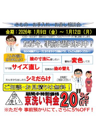 さが美 きものお手入れ・お直し相談会 開催のお知らせ
