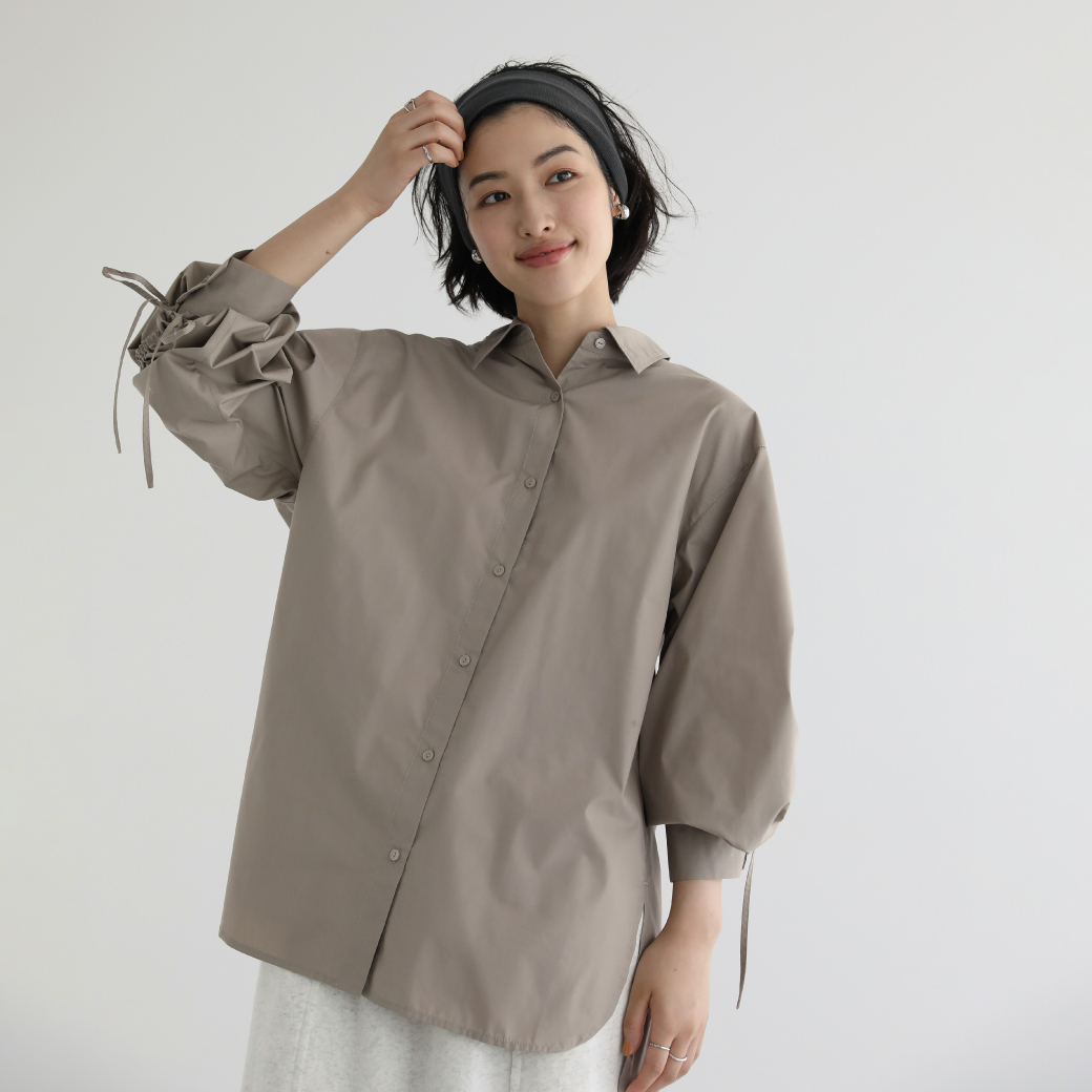 ボタンを閉めればシャープな印象、第二ボタンまで開けて女性らしい抜け襟で着るのもオススメです。