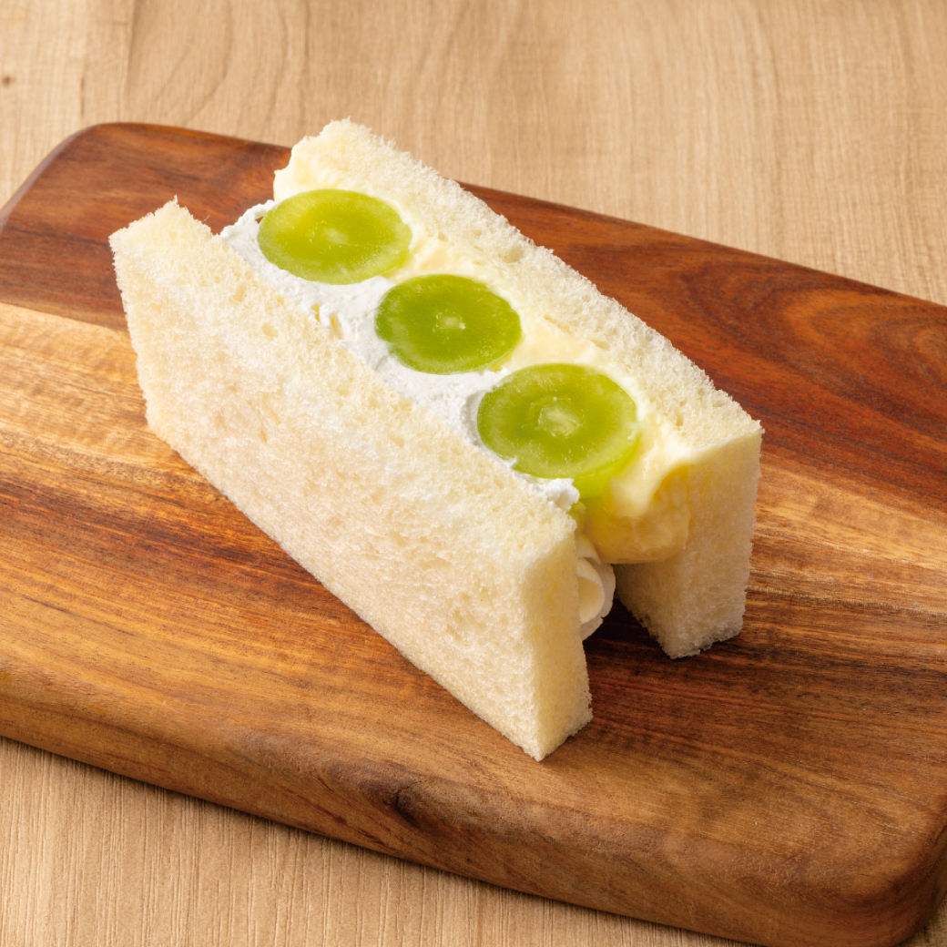 540円(税込)カットとまるごとの2種類の食感が楽しめるみずみずしいシャインマスカットサンドです。