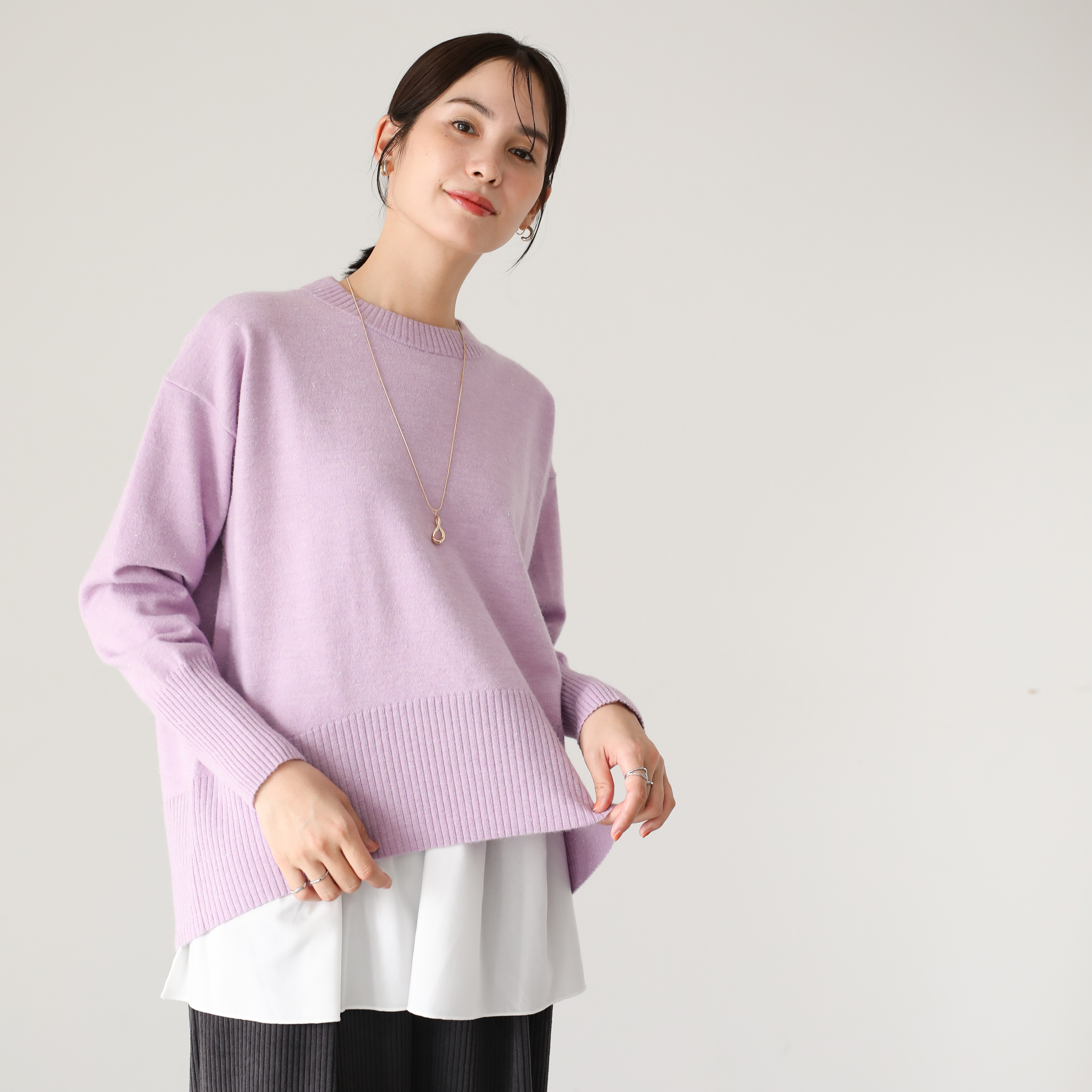 3,490円(税込)ふわふわもっちもちでちくちくしない、春先まで着られるニットです! ほどよいサイズのクルーネックで首元すっきり、レイヤーコーデにも重宝する着丈感で、さまざまな着こなしを楽しめます♪
