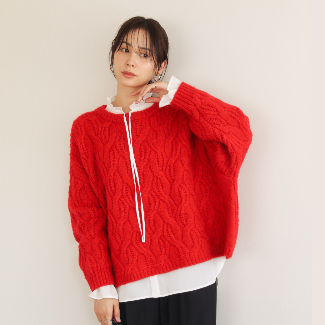 ふわふわケーブルニットプルオーバー