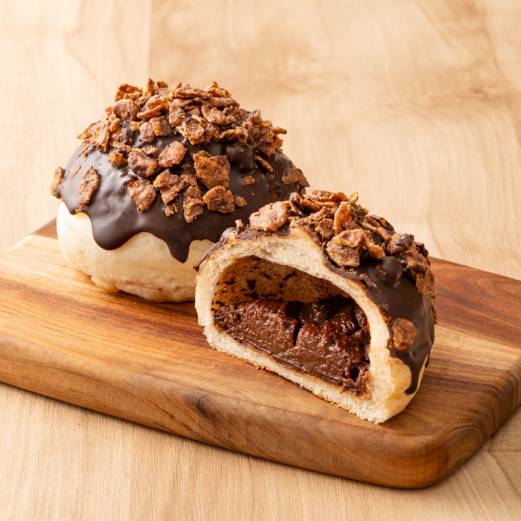 302円(税込)中にチョコクリーム、上にチョコフレークをトッピングした、チョコ好きが納得するザクザクとしたチョコパンを作りました!