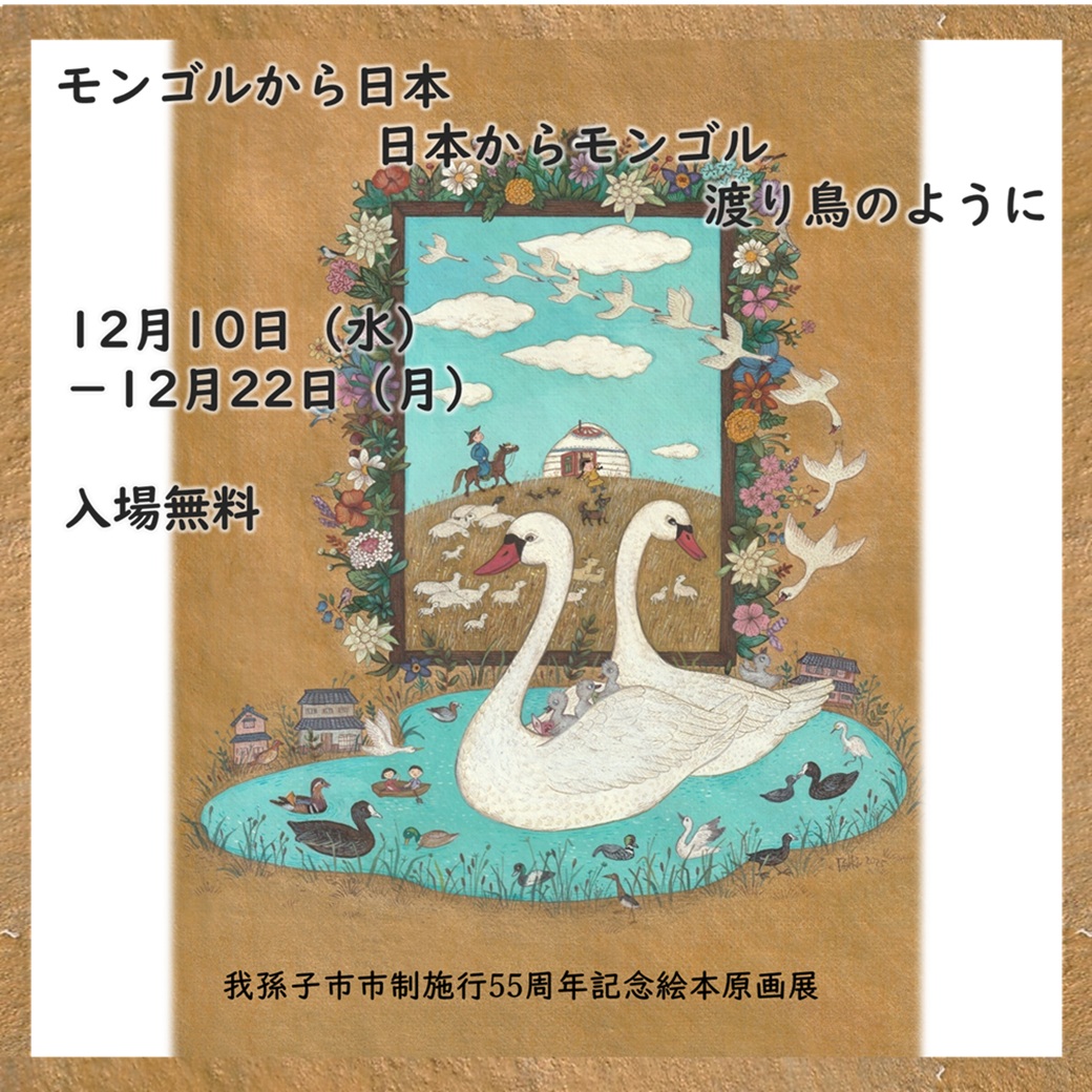 我孫子市市制施行55周年記念絵本原画展・関連講演会「モンゴルから日本 日本からモンゴル 渡り鳥のように」を開催いたします。