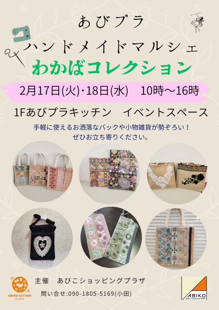 あびプラハンドメイドマルシェ わかばコレクション2月17日(火)・18日(水)