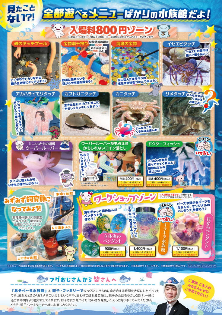 ※ワークショップコーナーは入場料はかかりません。体験料を各ブースにてお支払いください。