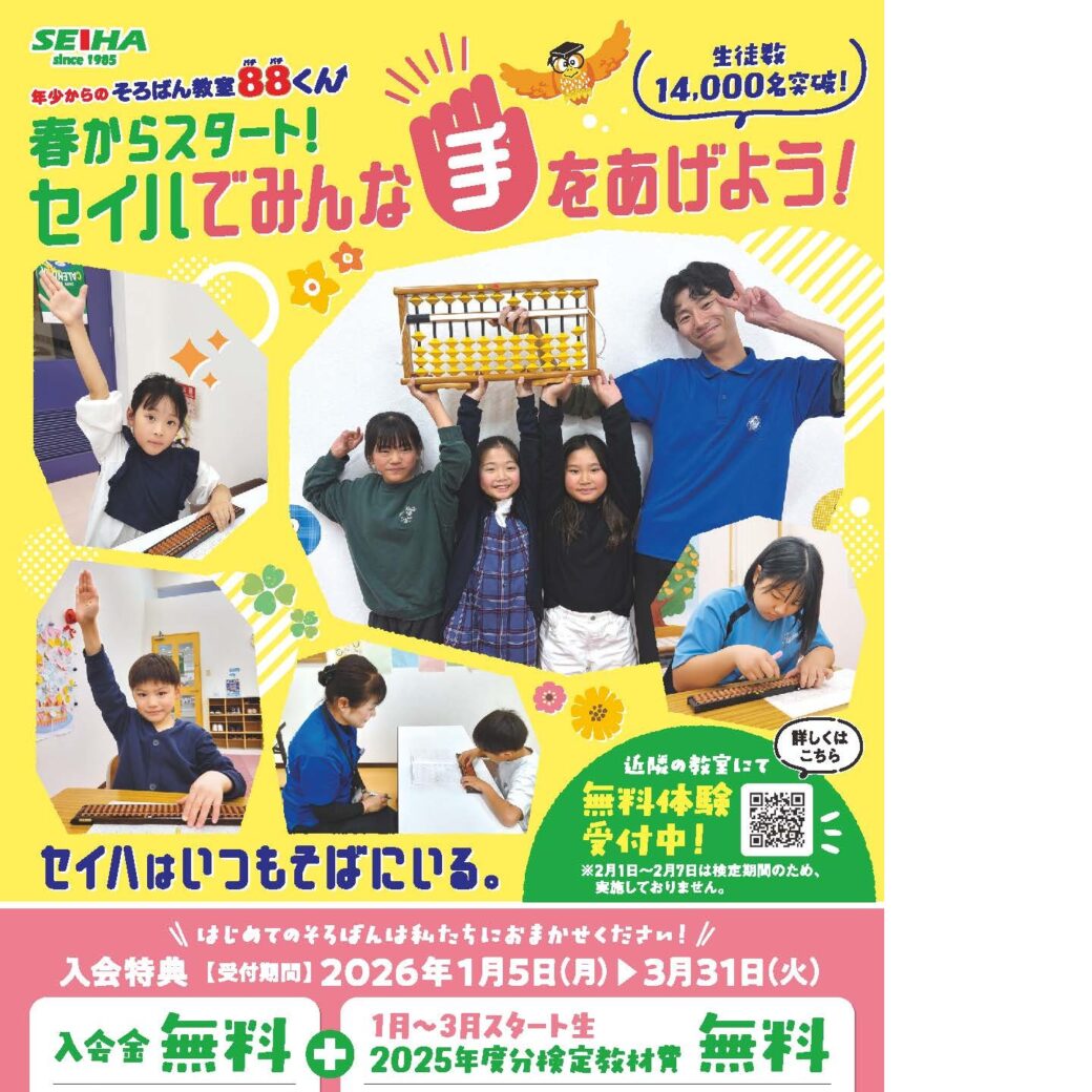 【春の特典】入会金無料+2025年度分検定教材費無料!春からスタート!無料体験受付中 初めてのそろばんは私たちにおまかせください!